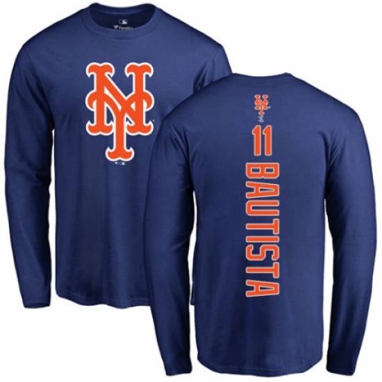 >MLB Nike New York Mets #11 Jose Bautista Royal Blue Backer Long Sleeve T-Shirt