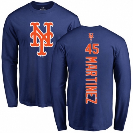 MLB Nike New York Mets #45 Pedro Martinez Royal Blue Backer Long Sleeve T-Shirt