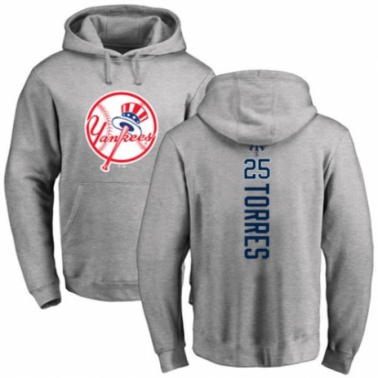 >MLB Nike New York Yankees #25 Gleyber Torres Ash Backer Pullover Hoodie