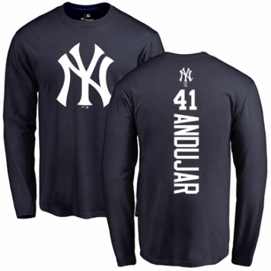MLB Nike New York Yankees #41 Miguel Andujar Navy Blue Backer Long Sleeve T-Shirt