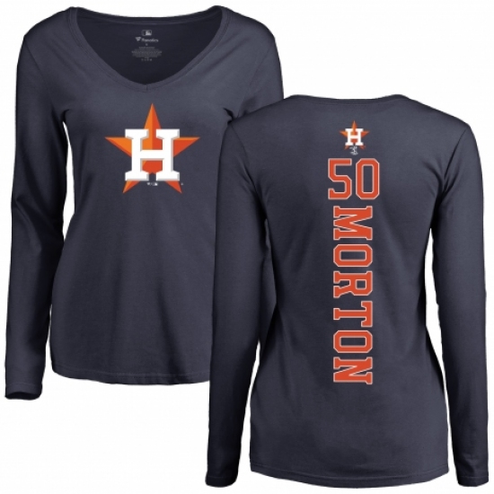 >MLB Women's Nike Houston Astros #50 Charlie Morton Navy Blue Backer Long Sleeve T-Shirt