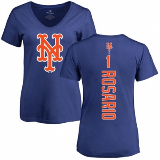 >MLB Women's Nike New York Mets #1 Amed Rosario Royal Blue Backer T-Shirt