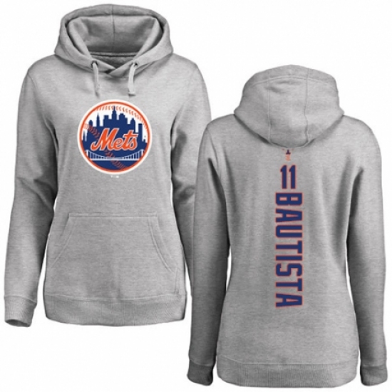 >MLB Women's Nike New York Mets #11 Jose Bautista Ash Backer Pullover Hoodie
