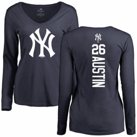 >MLB Women's Nike New York Yankees #26 Tyler Austin Navy Blue Backer Long Sleeve T-Shirt