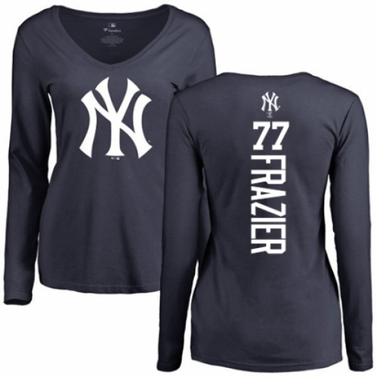 MLB Women's Nike New York Yankees #77 Clint Frazier Navy Blue Backer Long Sleeve T-Shirt