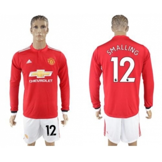 >Manchester United #12 Smalling Red Home Long Sleeves Soccer Club Jersey