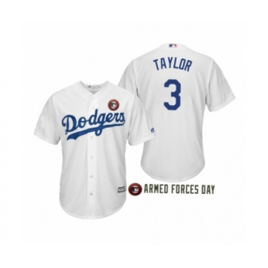 >Men's 2019 Armed Forces Day Chris Taylor #3 Los Angeles Dodgers White Jersey