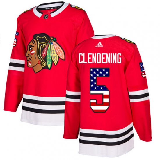 Men's Adidas Chicago Blackhawks #5 Adam Clendening Authentic Red USA Flag Fashion NHL Jersey