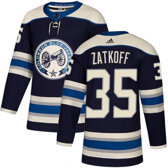 Men's Adidas Columbus Blue Jackets #35 Jeff Zatkoff Authentic Navy Blue Alternate NHL Jersey