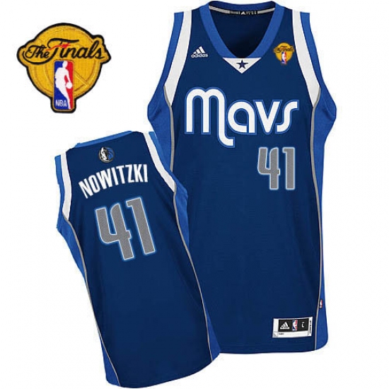 Men's Adidas Dallas Mavericks #41 Dirk Nowitzki Swingman Navy Blue Alternate Finals Patch NBA Jersey