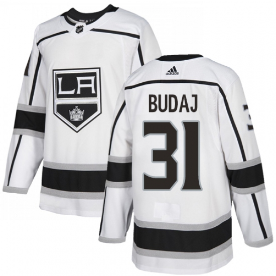 Men's Adidas Los Angeles Kings #31 Peter Budaj Authentic White Away NHL Jersey
