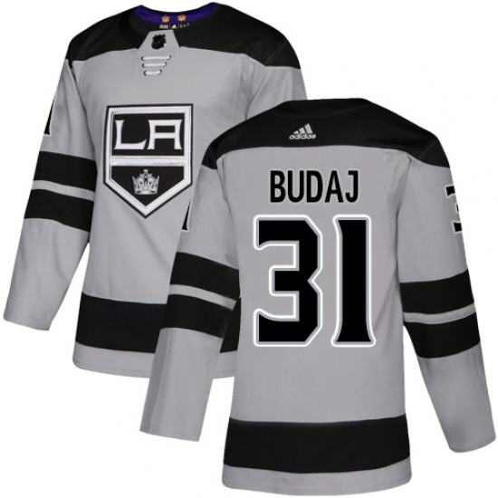 >Men's Adidas Los Angeles Kings #31 Peter Budaj Premier Gray Alternate NHL Jersey