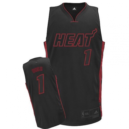 Men's Adidas Miami Heat #1 Chris Bosh Authentic Black Black/Red No. NBA Jersey