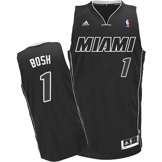 Men's Adidas Miami Heat #1 Chris Bosh Swingman Black/White NBA Jersey
