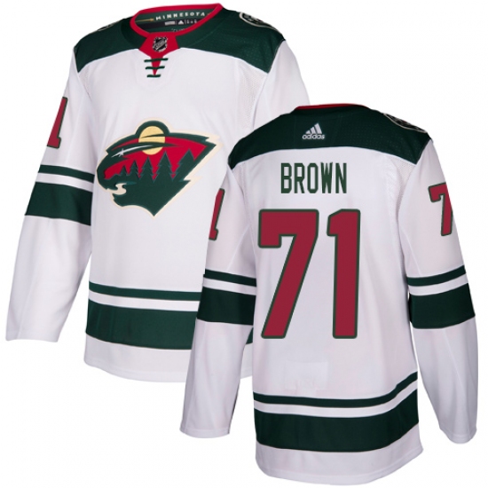 >Men's Adidas Minnesota Wild #71 J T Brown Authentic White Away NHL Jersey