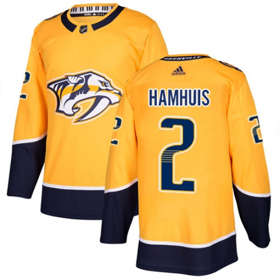 >Men's Adidas Nashville Predators #2 Dan Hamhuis Premier Gold Home NHL Jersey