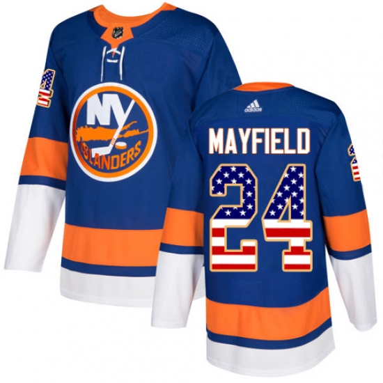 >Men's Adidas New York Islanders #24 Scott Mayfield Authentic Royal Blue USA Flag Fashion NHL Jersey