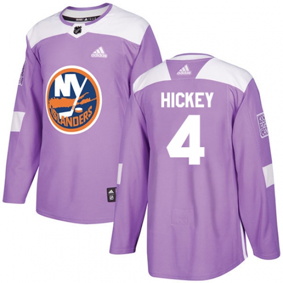>Men's Adidas New York Islanders #4 Thomas Hickey Authentic Purple Fights Cancer Practice NHL Jersey