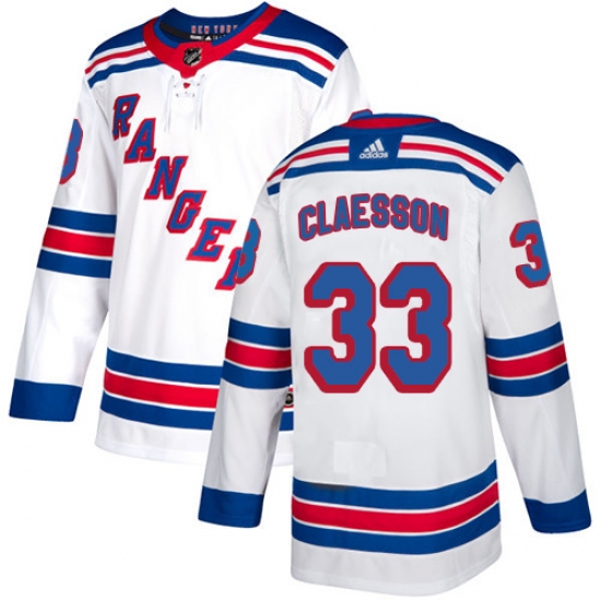Men's Adidas New York Rangers #33 Fredrik Claesson Authentic White Away NHL Jersey