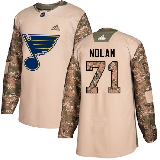 Men's Adidas St. Louis Blues #71 Jordan Nolan Authentic Camo Veterans Day Practice NHL Jersey