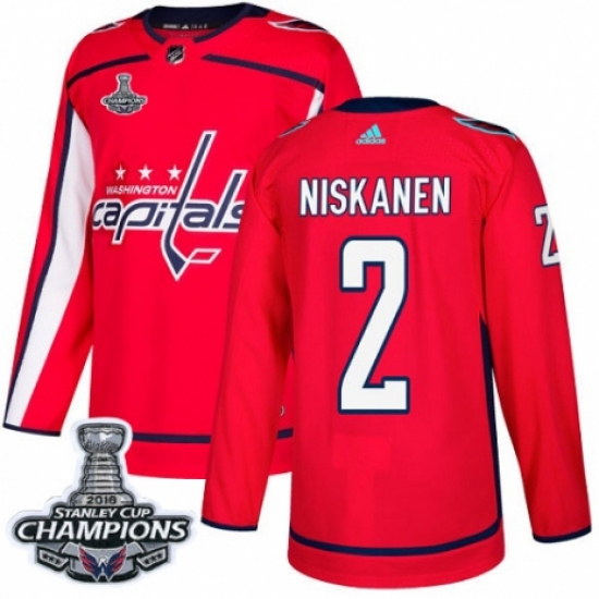 Men's Adidas Washington Capitals #2 Matt Niskanen Authentic Red Home 2018 Stanley Cup Final Champions NHL Jersey