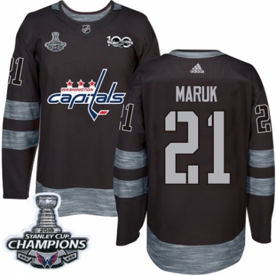 Men's Adidas Washington Capitals #21 Dennis Maruk Authentic Black 1917-2017 100th Anniversary 2018 Stanley Cup Final Champions NHL Jersey