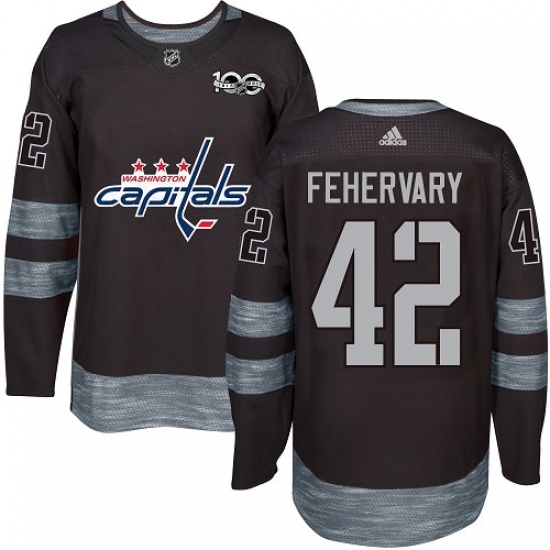 >Men's Adidas Washington Capitals #42 Martin Fehervary Authentic Black 1917-2017 100th Anniversary NHL Jersey