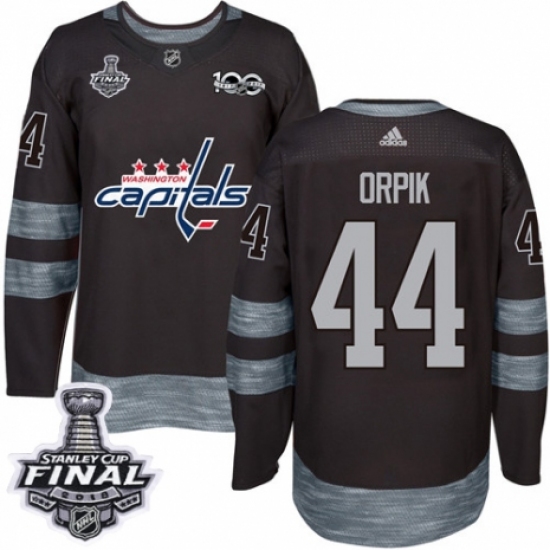 Men's Adidas Washington Capitals #44 Brooks Orpik Authentic Black 1917-2017 100th Anniversary 2018 Stanley Cup Final NHL Jersey