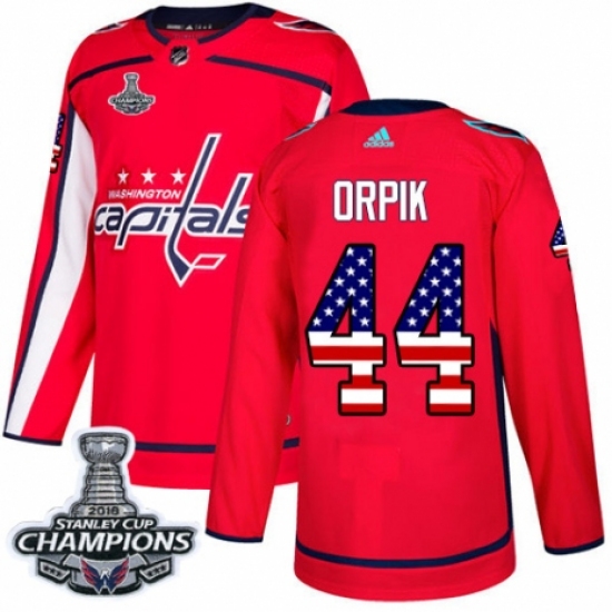 Men's Adidas Washington Capitals #44 Brooks Orpik Authentic Red USA Flag Fashion 2018 Stanley Cup Final Champions NHL Jersey