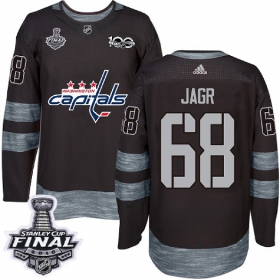 Men's Adidas Washington Capitals #68 Jaromir Jagr Authentic Black 1917-2017 100th Anniversary 2018 Stanley Cup Final NHL Jersey
