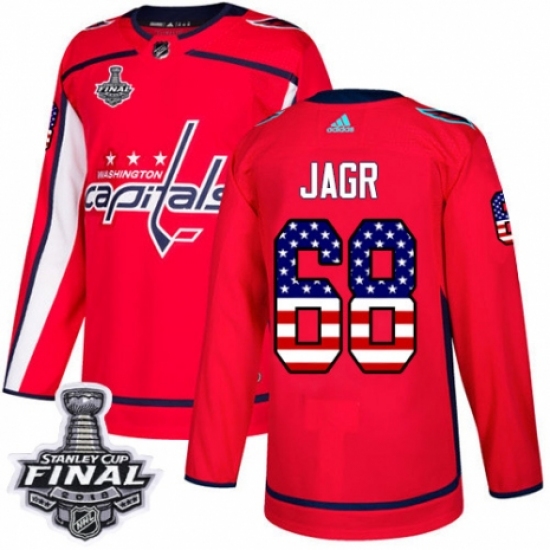 Men's Adidas Washington Capitals #68 Jaromir Jagr Authentic Red USA Flag Fashion 2018 Stanley Cup Final NHL Jersey