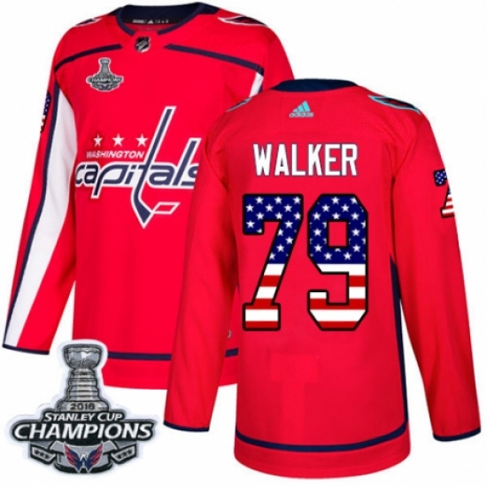 Men's Adidas Washington Capitals #79 Nathan Walker Authentic Red USA Flag Fashion 2018 Stanley Cup Final Champions NHL Jersey