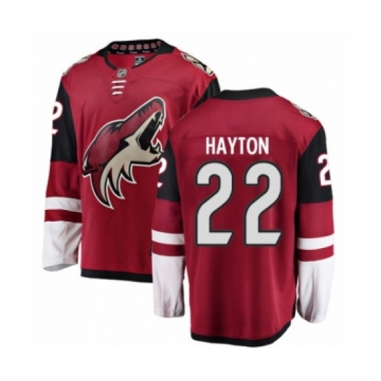 Men's Arizona Coyotes #22 Barrett Hayton Authentic Burgundy Red Home Fanatics Branded Breakaway NHL Jersey