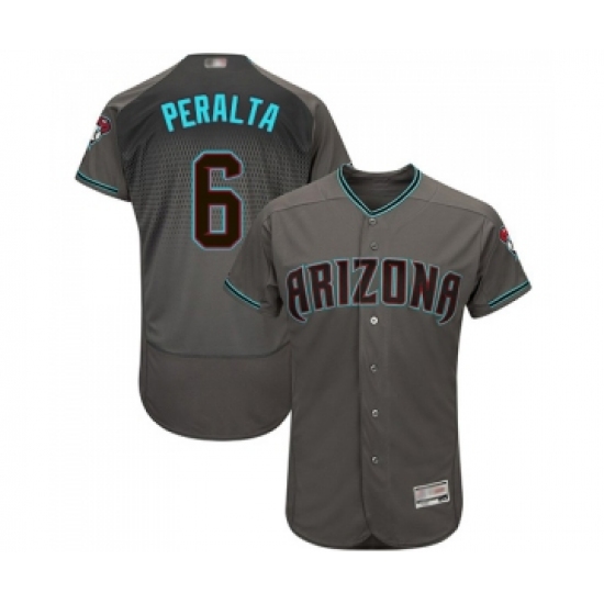 >Men's Arizona Diamondbacks #6 David Peralta Gray Teal Alternate Authentic Collection Flex Base Baseball Jersey