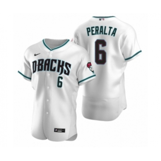 >Men's Arizona Diamondbacks #6 David Peralta Nike White Teal Authentic 2020 Alternate Jersey