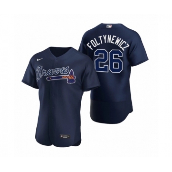 >Men's Atlanta Braves #26 Mike Foltynewicz Nike Navy Authentic 2020 Alternate Jersey
