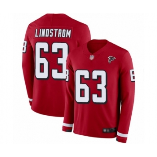>Men's Atlanta Falcons #63 Chris Lindstrom Limited Red Therma Long Sleeve Football Jersey