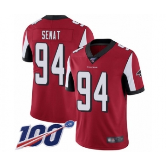 Men's Atlanta Falcons #94 Deadrin Senat Red Team Color Vapor Untouchable Limited Player 100th Season Football Jersey