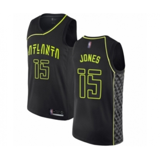 >Men's Atlanta Hawks #15 Damian Jones Authentic Black Basketball Jersey - City Edition