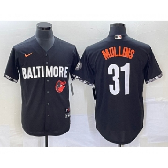 >Men's Baltimore Orioles #31 Cedric Mullins Black 2023 City Connect Cool Base Stitched Jersey