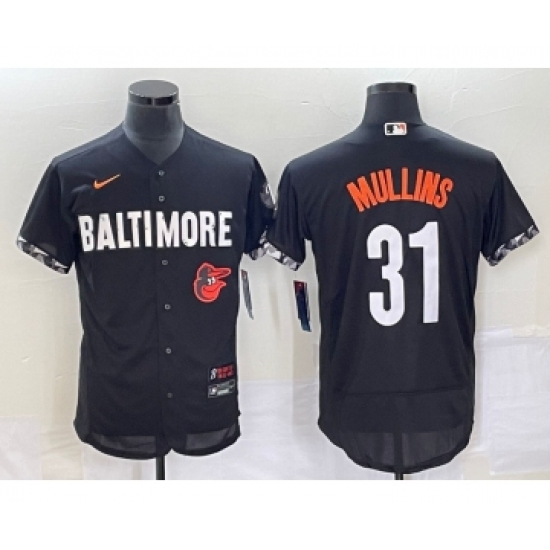 >Men's Baltimore Orioles #31 Cedric Mullins Black 2023 City Connect Flex Base Stitched Jersey