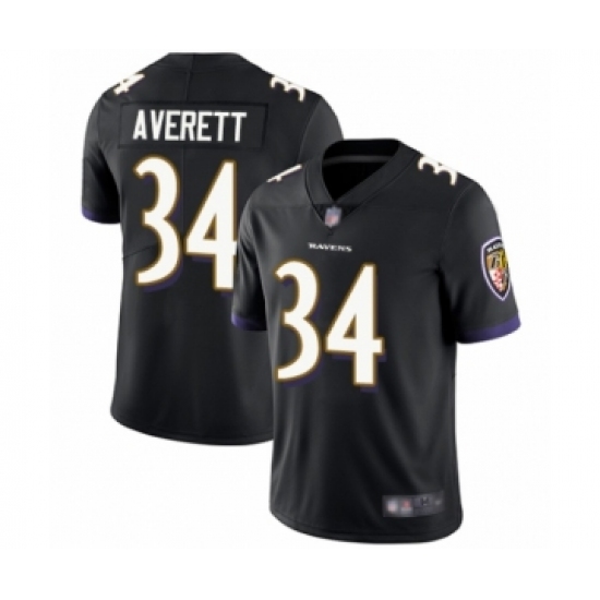 >Men's Baltimore Ravens #34 Anthony Averett Black Alternate Vapor Untouchable Limited Player Football Jersey