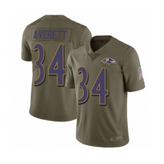 >Men's Baltimore Ravens #34 Anthony Averett Limited Olive 2017 Salute to Service Football Jersey