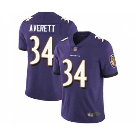 Men's Baltimore Ravens #34 Anthony Averett Purple Team Color Vapor Untouchable Limited Player Football Jersey