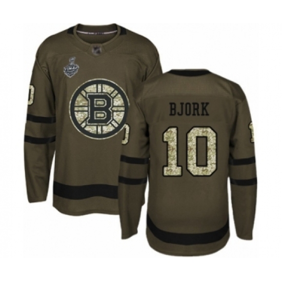Men's Boston Bruins #10 Anders Bjork Authentic Green Salute to Service 2019 Stanley Cup Final Bound Hockey Jersey
