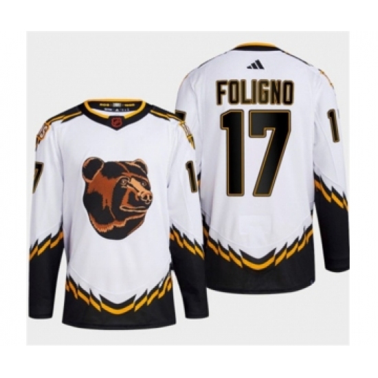 Men's Boston Bruins #17 Nick Foligno White 2022-23 Reverse Retro Stitched Jersey