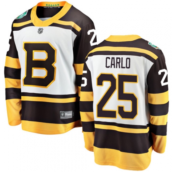 >Men's Boston Bruins #25 Brandon Carlo White 2019 Winter Classic Fanatics Branded Breakaway NHL Jersey