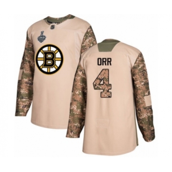 Men's Boston Bruins #4 Bobby Orr Authentic Camo Veterans Day Practice 2019 Stanley Cup Final Bound Hockey Jersey