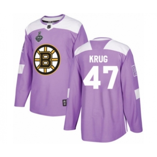 >Men's Boston Bruins #47 Torey Krug Authentic Purple Fights Cancer Practice 2019 Stanley Cup Final Bound Hockey Jersey