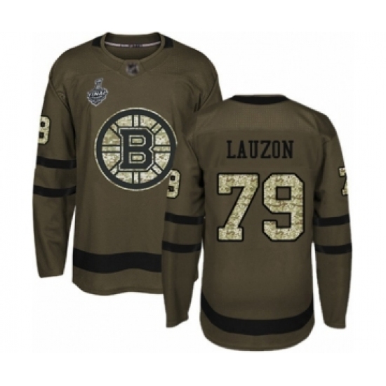 Men's Boston Bruins #79 Jeremy Lauzon Authentic Green Salute to Service 2019 Stanley Cup Final Bound Hockey Jersey